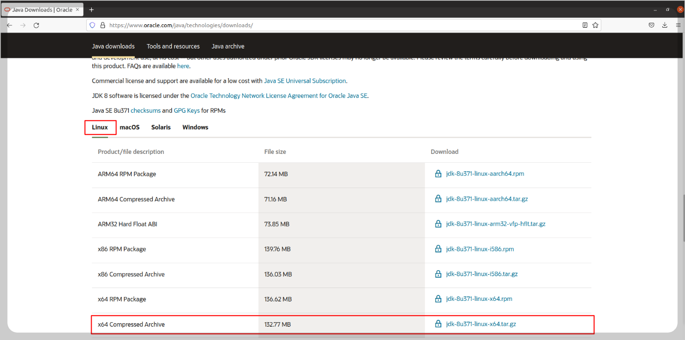 - 저의 경우, Linux x64 jdk 1.8 버전으로 다운로드 했습니다.