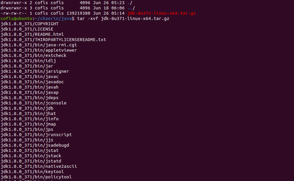 - $ tar -xvf jdk-8u371-linux-x64.tar.gz : 압축해제