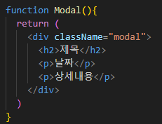 React 컴포넌트란 ?컴포넌트란 React의 핵심 개념 중 하나로, 페이지에 렌더링할 React 엘리먼트(element)를 반환하는 작고 재사용 가능한 코드 조각입니다. 컴포넌트는 반복출현하거나 자주 변경되는 HTML UI들을 만들어서 사용하는게 좋습니다. 이는 렌더링 시 성능적으로 이점을 갖게 합니다. 컴포넌트 유의사항1. 이름은 항상 대문자로 시작해야한다.- 이름이 소문자로 시작할 경우 DOM 태그로 인식하여 원하는 결과가 나오지 않을 수 있다. 2. return()안에 있는건 태그 하나로 묶어야한다.// 하나의 태그로 묶어야함return( )// 이렇게 사용되면 안됨return( ) 컴포넌트 만들기1. function 키워드를 사용하여 컴포넌트 만들..